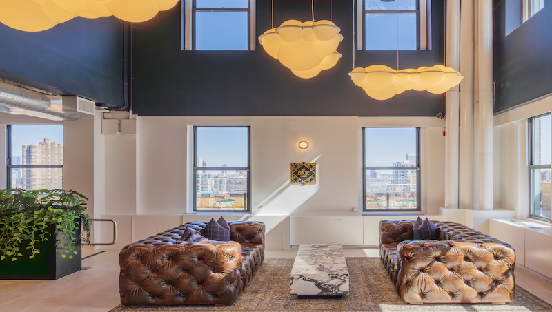 High above, the Eddie Lounge & Rooftop Terrace on the 27th floor offers 6,400 square feet of combined indoor and outdoor space with views of the Manhattan skyline. With a lounge, coffee bar, and expansive terrace, it provides an exceptional backdrop for receptions, networking events, and celebrations.