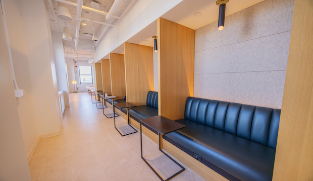 The Assembly, a ground-floor conference center, features a private street-level entrance, lounge area, and a full-service catering pantry. Its primary event room can be divided into three independent breakout spaces using an advanced Airwall system, offering versatility for conferences, team sessions, or presentations. An integrated AV system, high-speed Wi-Fi, and fully adjustable lighting ensure seamless execution for all event types.