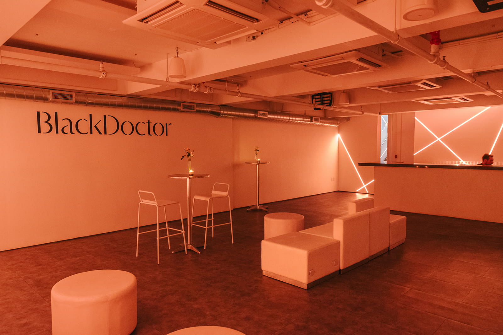 Tucked away down the LED staircase through a hidden door, guests enter a speak-easy area at the lower level of our venue. Featuring custom-controlled LED lighting woven throughout and a bar area fit for a buzzing cocktail reception, the cellar is the ideal environment to host guests before or after the main event. With a capacity for 80 people, this space provides options for cocktail and lounge setups, interactive set designs, and custom vinyl opportunities. The cellar has two bathrooms and a separate green room for VIP guests to lounge in.